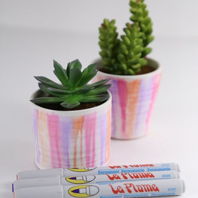 Learn how to create your own alcohol marker painted pot using the Le Plume Permanent alcohol markers. Use the variety of colors to create this awesome watercolor effect. A great project for adding some extra color to your flower pots.